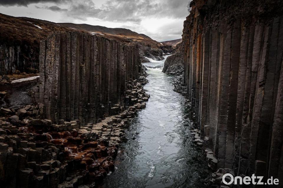 Studlagil Canyon im Nordosten Islands beeindruckt durch über 30 Meter hohe Basaltsäulen.