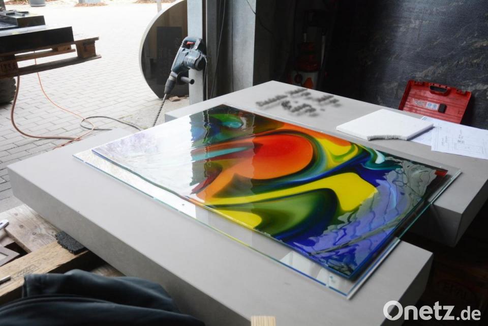 Edelstahl und farbiges Glas
