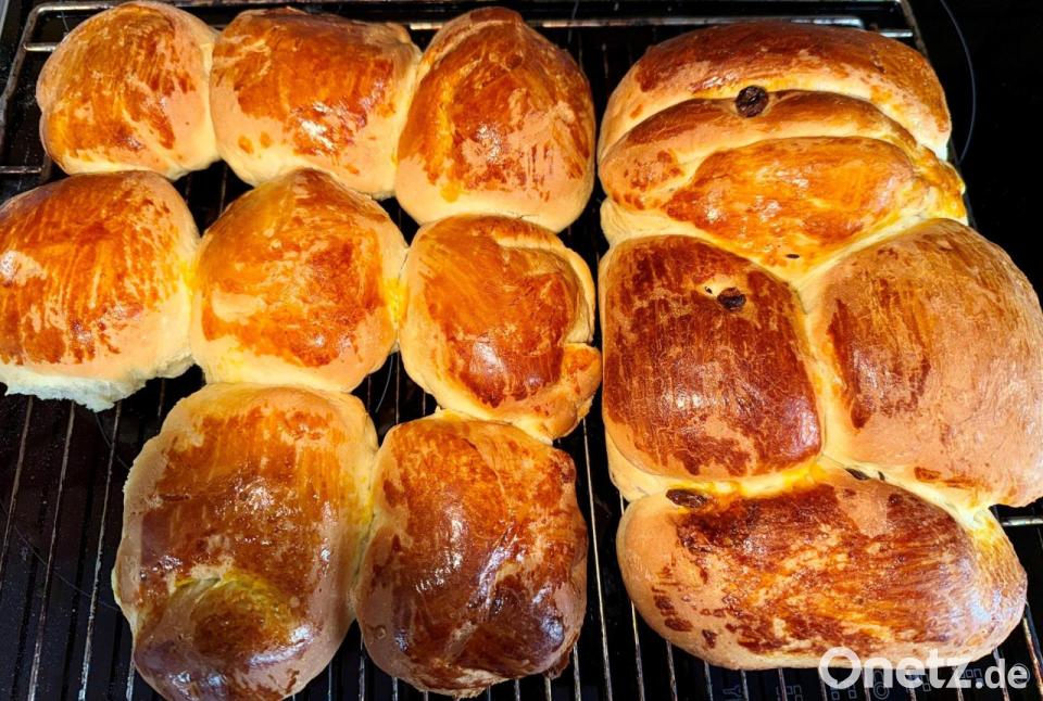 Die Größe der Reine beeinflusst das spätere Aussehen der Buchteln. Ist sie groß, ergeben sich eher einzelne Gebäckstücke. Ist sie kleiner, gehen die Buchteln zusammen und werden nach dem Backen auseinandergerissen oder geschnitten. Die Milch mit dem Eigelb verquirlen und über den Teig streichen. Nach etwa 25 bis 35 Minuten im Ofen sind die Buchteln fertig.