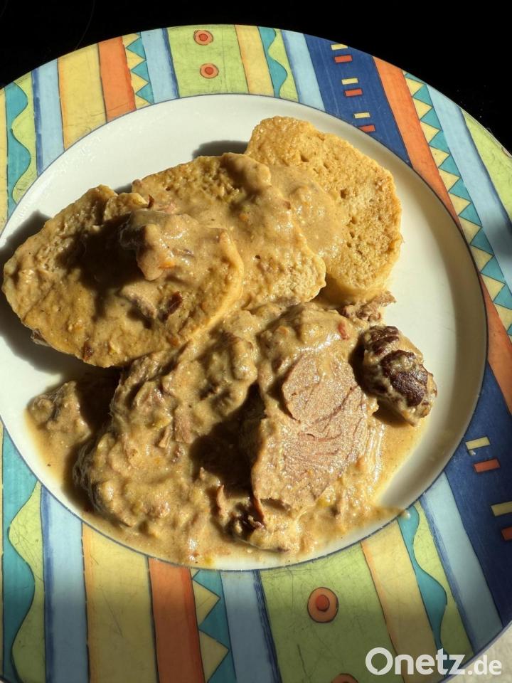 Dazu gibt es selbstgemachte Böhmische Knödel oder andere Spotzen sowie Salate der Saison wie aktuell Krautsalat und Rote-Beete-Carpacchio. Auch Preiselbeeren kommen auf den Tisch. (ui)
