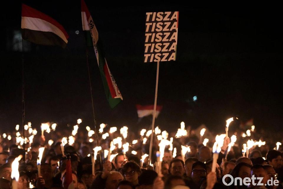 „Viele Millionen Ungarn werden morgen für ein europäisches, funktionsfähiges, menschliches, freies und unabhängiges Ungarn stimmen“, sagte Magyar am Vorabend der Parlamentswahl am Sonntag in der ostungarischen Stadt Debrecen vor mehr als 10.000 Anhängern seiner bürgerlichen Partei Tisza. „Die Theiß schwillt an!“, skandierten sie immer wieder. Die Abkürzung Tisza steht für den Parteinamen Respekt und Freiheit und bedeutet auf Ungarisch zugleich den Fluß Theiß, der durch das Land fließt und früher für seine Überschwemmungen bekannt war.