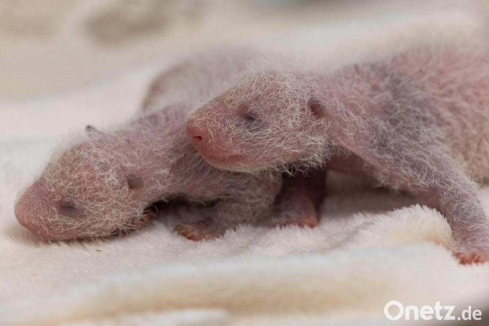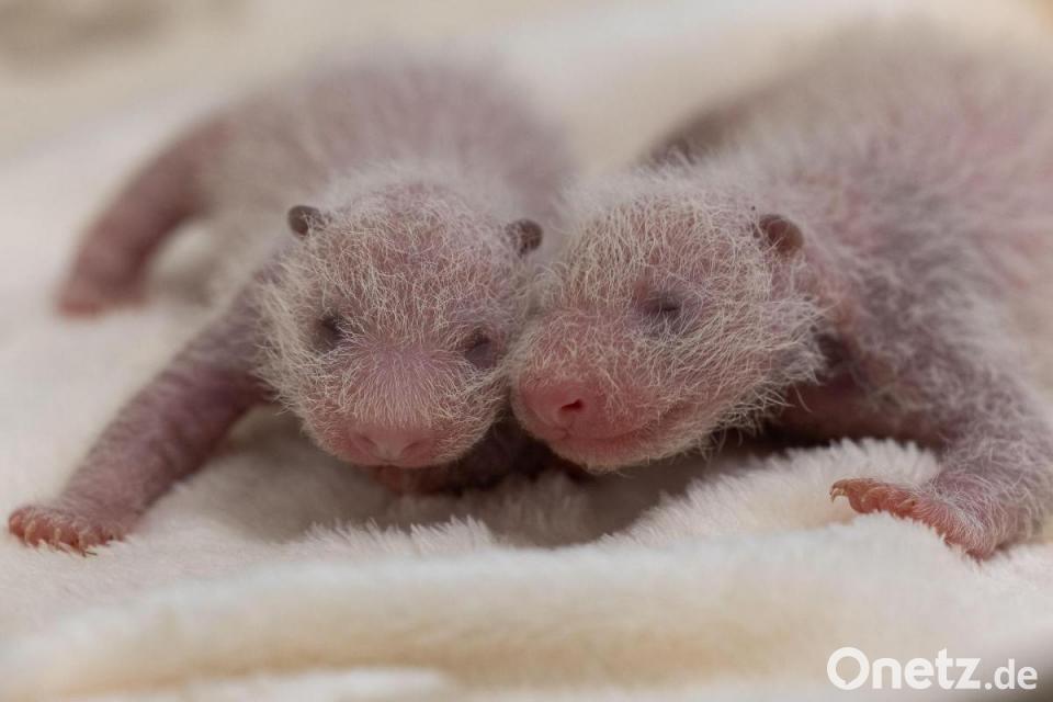 Eine Woche nach der Geburt der Panda-Zwillinge im Berliner Zoo steht das Geschlecht fest: Es sind zwei Weibchen, wie der Zoo mitteilte. Noch ähneln die Jungtiere zwei kleinen nackten Meerschweinchen mit weißen Fusseln. Doch langsam aber sicher sei die pandatypischen Färbungen an Ohren, Augen und am Schultergürtel zu erkennen, sagte Zoodirektor Andreas Knieriem. „Die beiden Weibchen sind agil und entwickeln sich prächtig.“