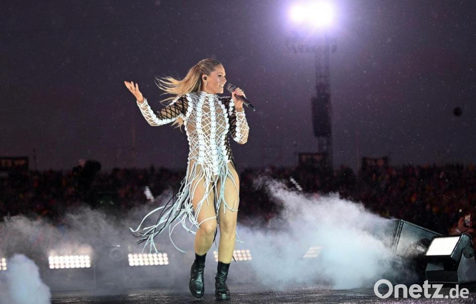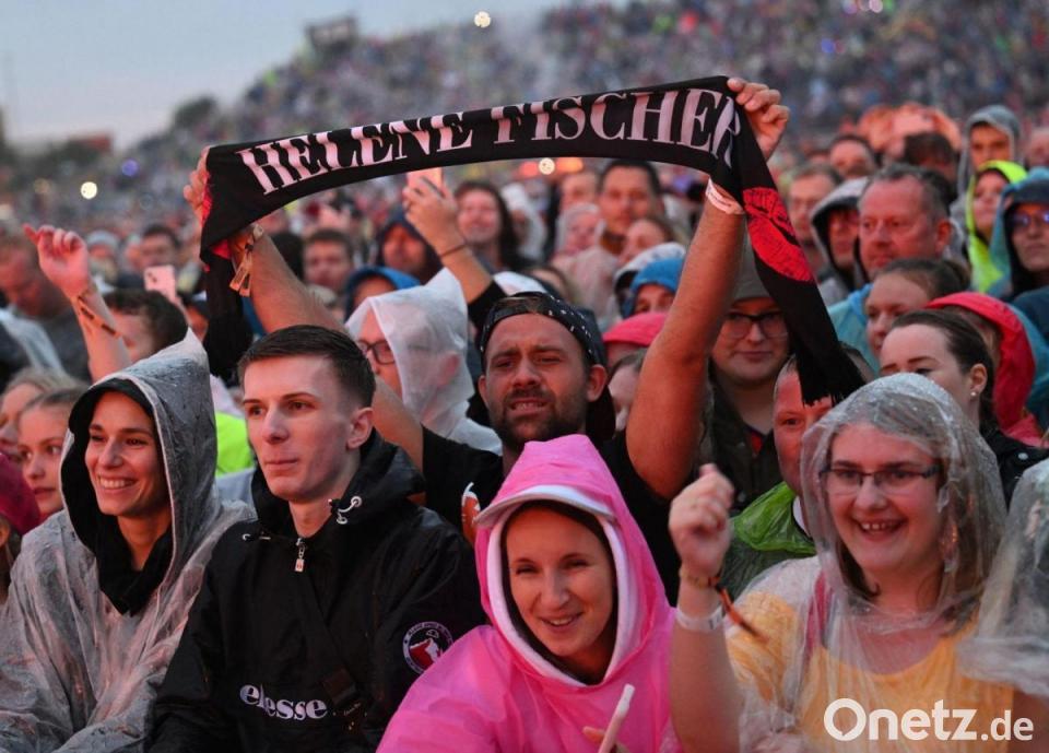 130.000 Fans trotzen dem miesen Wetter und lassen sich die Laune nicht verderben. Als die Sängerin auf der riesigen Bühne auftaucht, ist der Jubel groß und sogar die Sonne zeigt sich noch für einige Augenblicke. „Ich hab' gedacht mein Herz zerspringt in 1000 Teile“, sagte Helene Fischer angesichts der Menschenmasse. „Das ist das, was ich so lange vermisst habe.“ Es ist der erste große Live-Auftritt der 38-Jährigen nach einer Pause.