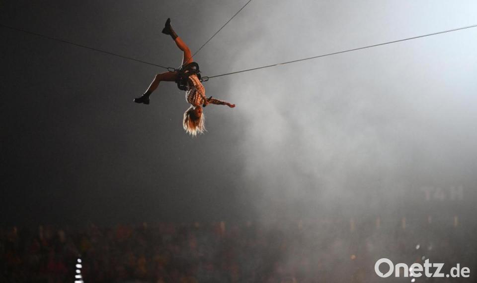 Und die Fans von Helene Fischer werden nicht enttäuscht. Nach der überraschenden Anmoderation durch ihren früheren Lebensgefährten und Schlager-Star Florian Silbereisen, heizt die Sängerin kräftig ein. Los geht es mit Songs wie „Genau dieses Gefühl“, „Liebe ist ein Tanz“ und „Fehlerfrei“ - obwohl sie „nichts mehr gewohnt“ ist, wie sie zwischendurch schwer schnaufend sagt. An Seilen schwebt sie in mehreren Metern Höhe über dem Publikum. Mehrmals wechselt sie ihr Outfit - vom geschnürten Fransenkleid zum schwarzen Body mit schwarzer Hose bis zum knallroten und hautengen Anzug.