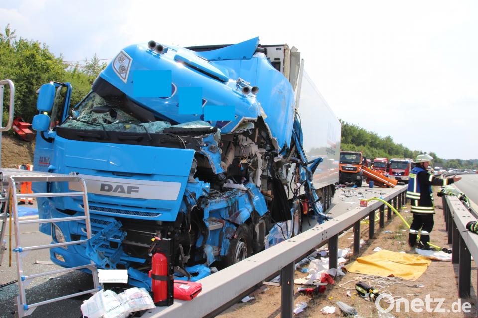 Wie sich zeigte, war dem Mann der Autobahnmeisterei im Führerhaus vor dem Sicherungsanhänger nichts passiert. Er rette sich mit einem Sprung aus der Kabine. Weitaus schlimmer traf es den 25-jährigen Tschechen. Durch den Aufprall auf den Hänger wurde er in seiner eigenen Fahrerkabine eingeklemmt und sehr schwer verletzt.