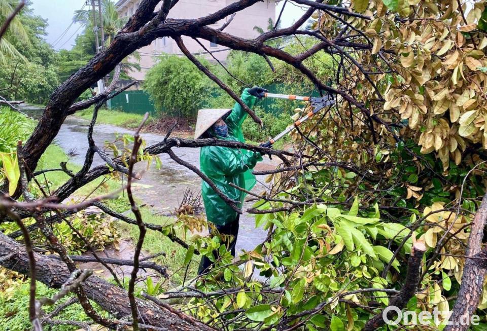 In Vietnam traf der Tropensturm mit orkanartigen Winden, schweren Gewittern und Starkregen nördlich der Stadt Vinh in der Provinz Nghe An auf Land. Dort hätten sich Straßen in Flüsse verwandelt, berichteten lokale Medien. Viele Autos hätten aus den Wassermassen geborgen werden müssen.