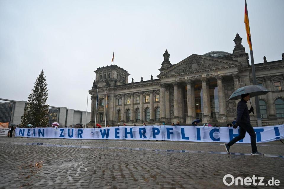 Aus Protest gegen die Wehrdienst-Pläne gingen junge Menschen in mehreren deutschen Städten auf die Straße - und nicht in die Schule. Proteste waren unter anderem in Berlin, Hamburg, Düsseldorf, Dresden und München angekündigt, wie aus einer Übersicht der Initiative „Schulstreik gegen Wehrpflicht“ hervorgeht. „Wir wollen nicht als Kanonenfutter enden“, heißt es auf Instagram in einem Aufruf. Proteste gegen die Wehrdienst-Pläne gab es auch vor dem Bundestag.