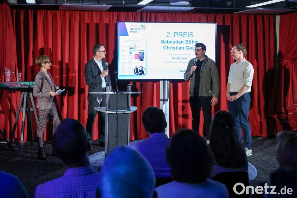 Das Podcast-Team Sebastian Böhm und Christian Gold von Oberpfalz-Medien ist beim renommierten Kölner Recherchepreis 2024 ausgezeichnet worden. Ihr Multimedia-Projekt „Die Kupfers“ erhielt den mit 5000 Euro dotierten 2. Preis. Es überzeugte die Jury durch umfangreiche Recherchen und eine herausragende multimediale Aufbereitung. Die Preisverleihung fand am Montagabend im Neven DuMont Haus in Köln statt.