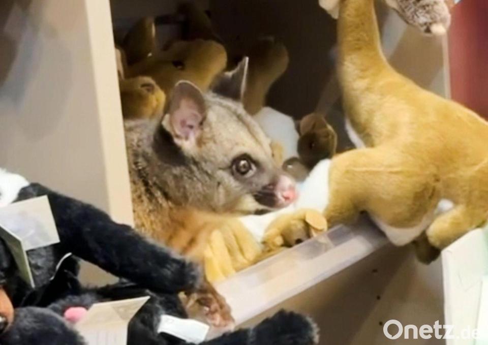 Kaum zu unterscheiden von den anderen im Regal: Zwischen flauschigen Plüschtieren hatte es sich am Flughafen von Hobart auf der australischen Insel Tasmanien plötzlich ein echtes Possum gemütlich gemacht – ruhig, neugierig und bestens getarnt. Zwischen kuscheligen Kängurus, Koalas und Dingos entdeckte ein überraschter Passagier das Beuteltier, das sich fast nahtlos in die Reihe der Souvenirartikel einfügte.