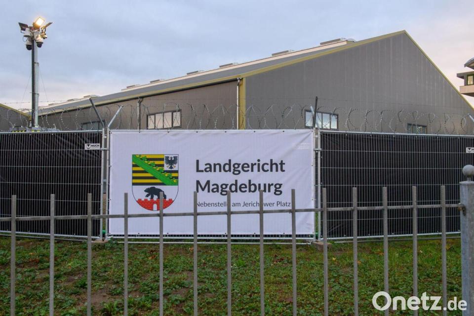 Für den Prozess ist ein spezielles Interims-Gerichtsgebäude in Leichtbauweise errichtet worden – allen Betroffenen soll so Gelegenheit gegeben werden, das Verfahren persönlich zu verfolgen. Die Dimension ist riesig: Der Verhandlungssaal ist 65 Meter lang und 30 Meter breit. Er bietet Platz für etwa 450 Nebenkläger und Nebenklagevertreter und hat 200 Plätze für Zuschauer und Medienvertreter. Das Land Sachsen-Anhalt mietet das Gebäude für die Prozessdauer und rechnet mit Kosten im mittleren einstelligen Millionenbereich.