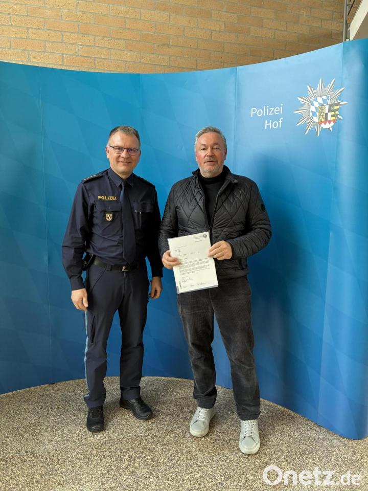 Eduard Wunder aus Hof wurde Ende Oktober für seine Zivilcourage geehrt. Am 1. September hatte er in der Hofer Innenstadt geholfen, einen flüchtenden Straftäter zu stoppen.