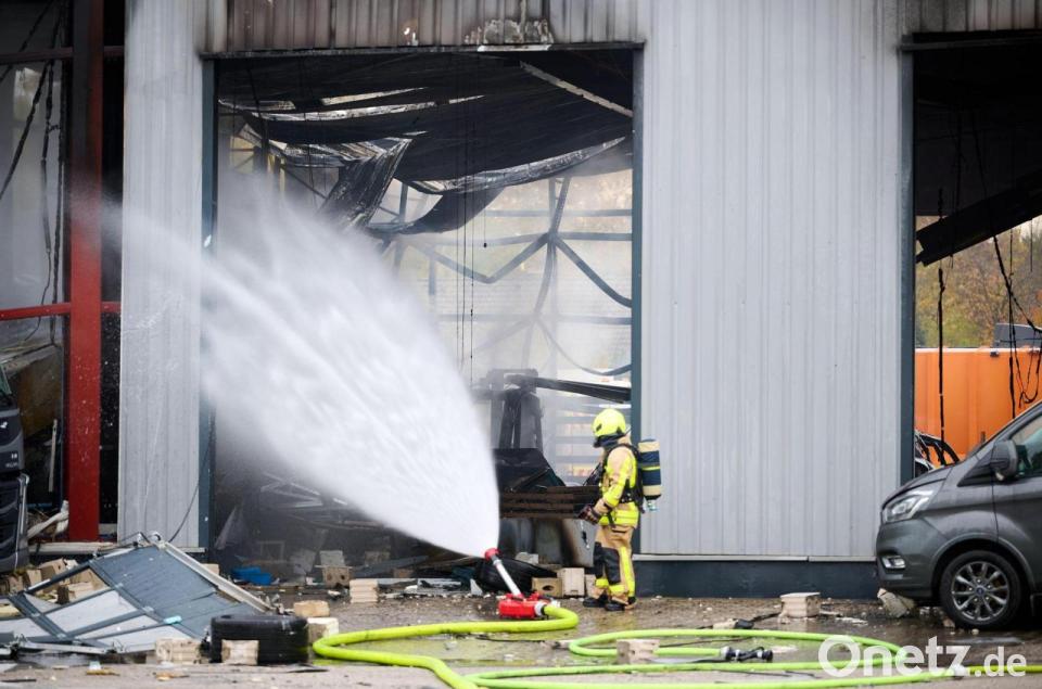 Nach der Explosion sei ein Brand ausgebrochen, der die Halle stark zerstört habe. Sie sei wohl abbruchreif, sagte der Feuerwehrsprecher. Die Ursache von Explosion und Brand war zunächst unklar. Die Feuerwehr löschte mit starken Kräften und hatte das Feuer nach etwa zwei Stunden unter Kontrolle. Am Freitagmittag begannen Brandermittler der Polizei mit ihren Untersuchungen.