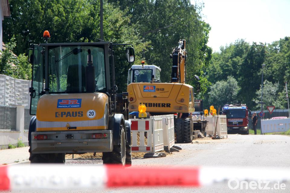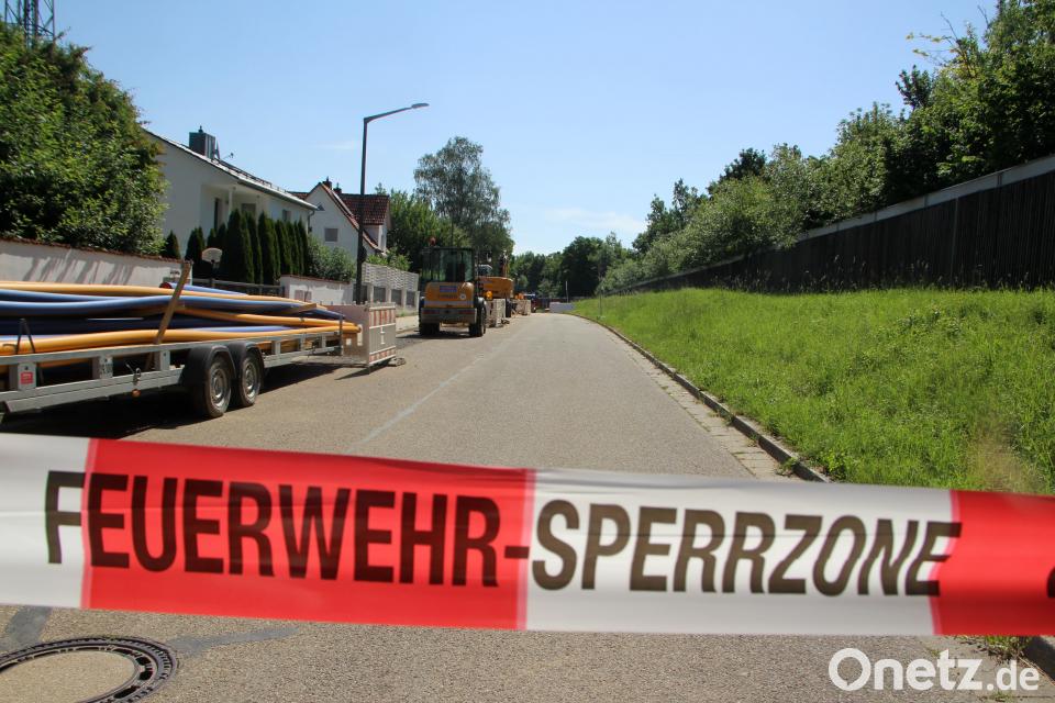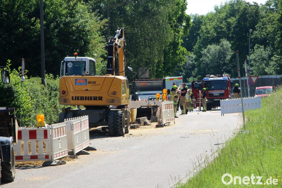 Ein Baggerfahrer hatte in Regensburg eine Gasleitung abgerissen. Die Einsatzkräfte sperrten den Straßenabschnitt.