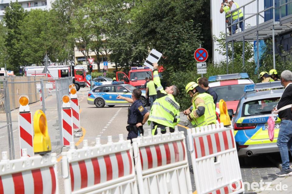 In Regensburg-Königswiesen sind mehrere Bauarbeiter auf zwei Kräne geklettert und haben sich hoch droben verschanzt. Sie protestieren und behaupten, seit zwei Monaten kein Gehalt mehr bekommen zu haben. Weitere Bauarbeiter versammelten sich am Boden. Einsatzkräfte der Polizei und der Höhenretter sind bereits am Ort des Geschehens. Feuerwehrleute halten eine Drehleiter bereit. Man wolle die Lage friedlich klären, heißt es von Seiten der Beamten. Der Einsatz dauert jedoch noch an.