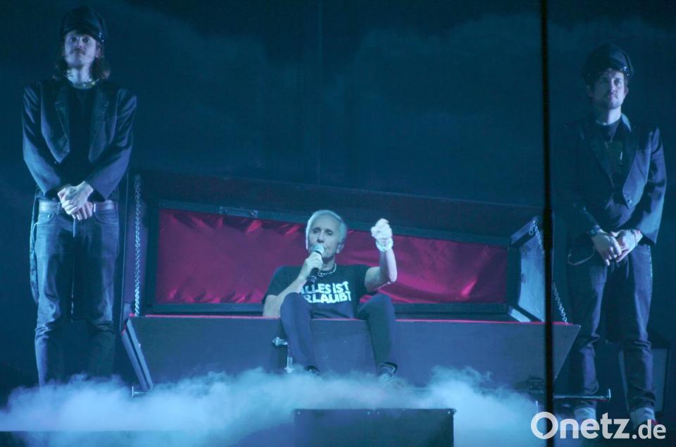 Klaus Eberhartinger hat schon auf viele Arten die Bühne betreten: Als kaiserlicher Hofnarr, der aus einer überdimensionalen Toilettenschüssel hüpft, zum Beispiel. Nun lässt sich der Frontmann der Ersten Allgemeinen Verunsicherung in einem Sarg auf die Bühne tragen - dem Anlass ist das durchaus angemessen.