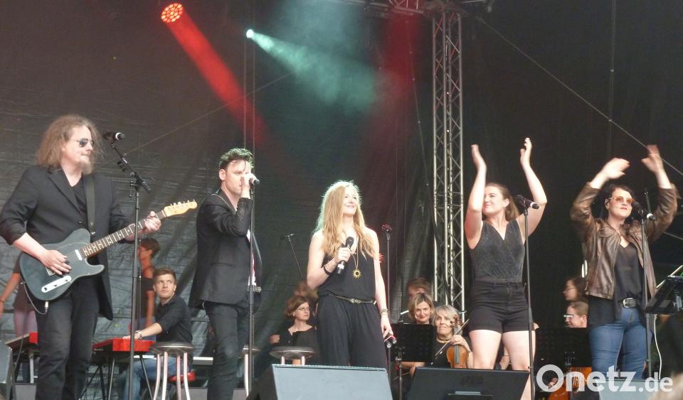 Die Dusche von oben gibt es noch rechtzeitig vor Beginn, so dass das Publikum den Auftritt an einem wieder schön gewordenen Abend dann in vollen Zügen genießen kann. Steffi Denk, Lisa Wahlandt, Martin Strasser, Lisa Stadler und Markus Engelstädter stehen als Sänger im Mittelpunkt der Konzertshow. Sie liefern den Fans eine authentische Revue des gesamten Song-Materials von "The Wall" und ernten mit dieser Hit-Sammlung, zu der freilich „Another brick in the wall“ oder „Run like hell“ gehören, frenetischen Applaus. Ersteres gibt es als Zugabe gar ein zweites Mal, bevor es auch noch richtig romantisch wird auf der Piazza. Zum Finale kommt außerhalb von "The Wall" noch einer der größten Pink-Floyd-Hits an die Reihe - "Wish you were here", und die Begeisterung kennt kaum noch Grenzen. Kein Wunder: Sänger, Band, Streichorchester und Kinderchor im Background haben nämlich zusammen einen Klasse-Auftritt hingelegt.