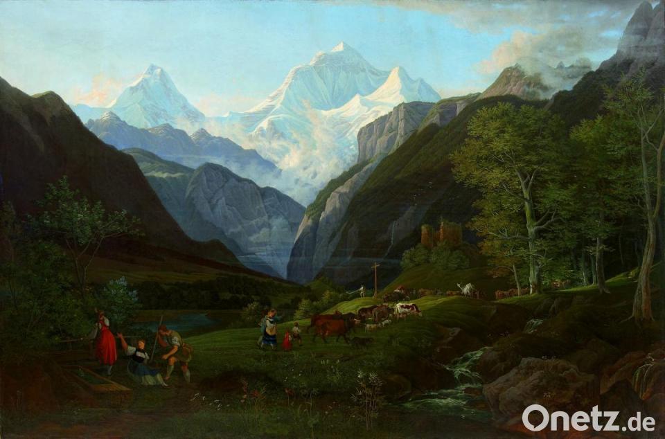 Im Mittelpunkt steht ein Gemälde: Ludwig Richters "Frühlingsmorgen im Lauterbrunner Tal (Auszug der Sennen)" gehört zu den Vorzugsstücken der deutschen Romantik. Mit den imposanten Gebirgsformationen gliedert sich der 1803 in Dresden geborene und ebendort im Jahre 1884 verstorbene Ludwig Richter ein in die Reihe eines Caspar David Friedrich oder Joseph Anton Koch.