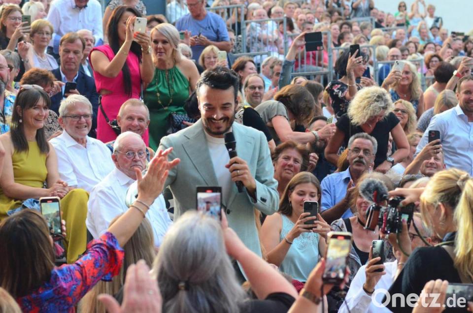 Plötzlich hielt Giovanni Zarrella bei seinem Konzert am Sonntagabend im Schlosshof von Fürstin Gloria von Thurn und Taxis bei den Schlossfestspielen die Regenbogenfahne in der Hand. "Man sollte lieben dürfen, wen man mag", sagte er. Die Regenbogenfarbe steht für Toleranz.