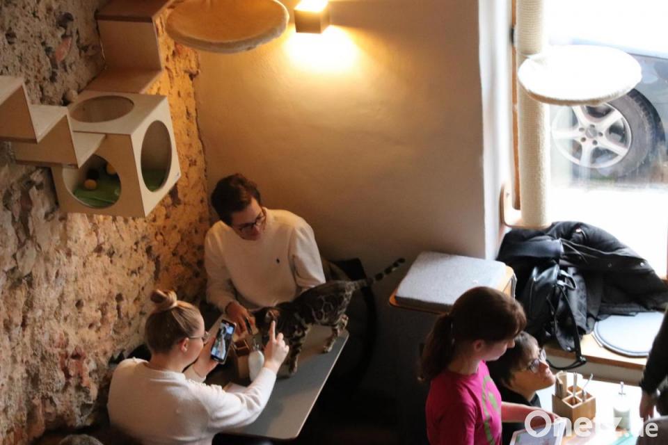 Katzenfreundlich zieren den Gastraum neben Tischen und Stühlen Kratzbäume, Klettermöglichkeiten und Rückzugsorte für die Vierbeiner. Laut medizinischer Untersuchungen wirkt das Schnurren von Katzen entspannend. Der Kontakt zu Katzen kann den Blutdruck senken. Die menschlichen Besucher im Katzencafé sind einfach nur neugierig und wollen sich überraschen lassen.