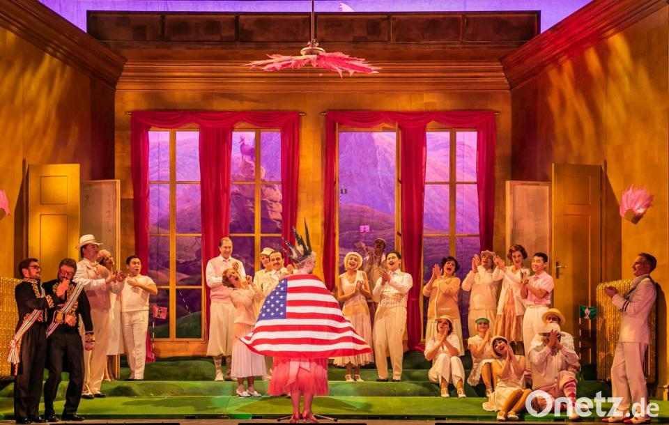Allerdings war dieses lange Mauerblümchen-Dasein des Werks in den letzten Jahrzehnten nicht ganz unberechtigt. Denn der von Kálmán und seinen Librettisten Julius Brammer und Alfred Grünwald in dieser Operette behandelte "Clash of culture" zwischen Wiener Romantik und ungarischem Csárdás auf der einen und amerikanischem Charleston auf der anderen Seite wirkt heutzutage schon etwas antiquiert. Hier und da überschreitet das Werk auch die Grenze zum läppischen Kitsch. Da muss sich die Regie schon etwas einfallen lassen, um dieses Werk für das heutige Publikum unterhaltsam zu gestalten. Regisseur Aron Stiehl, der am Theater in der letzten Spielzeit bereits Eduard Künnekes "Vetter aus Dingsda" recht amüsant inszenierte, lässt sich auch dieses Mal wieder einiges einfallen, um den Unterhaltungswert zu steigern.