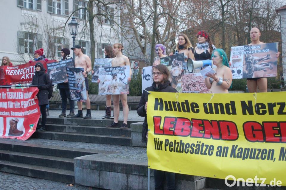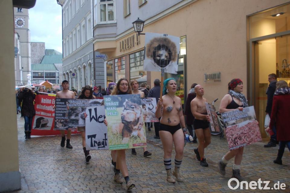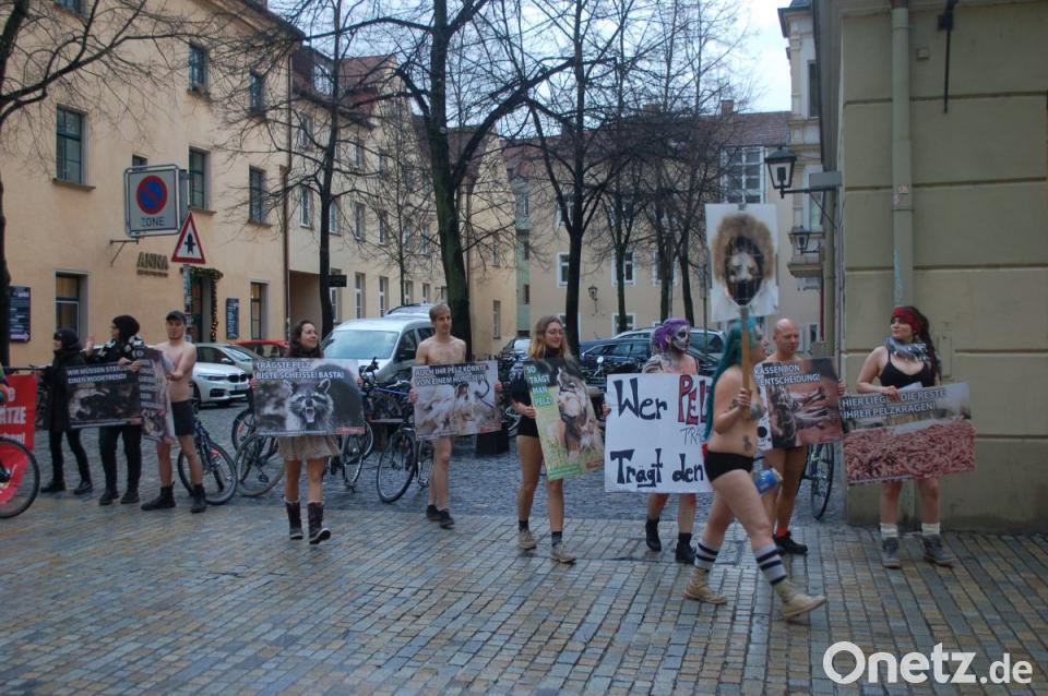 Für Aufsehen haben knapp 20 junge Leute gesorgt, die am Samstagnachmittag teils fast nackt durch die Regensburger Altstadt zogen. Sie demonstrierten mit ihrer ungewöhnlichen Aktion gegen das Tragen von Pelz.