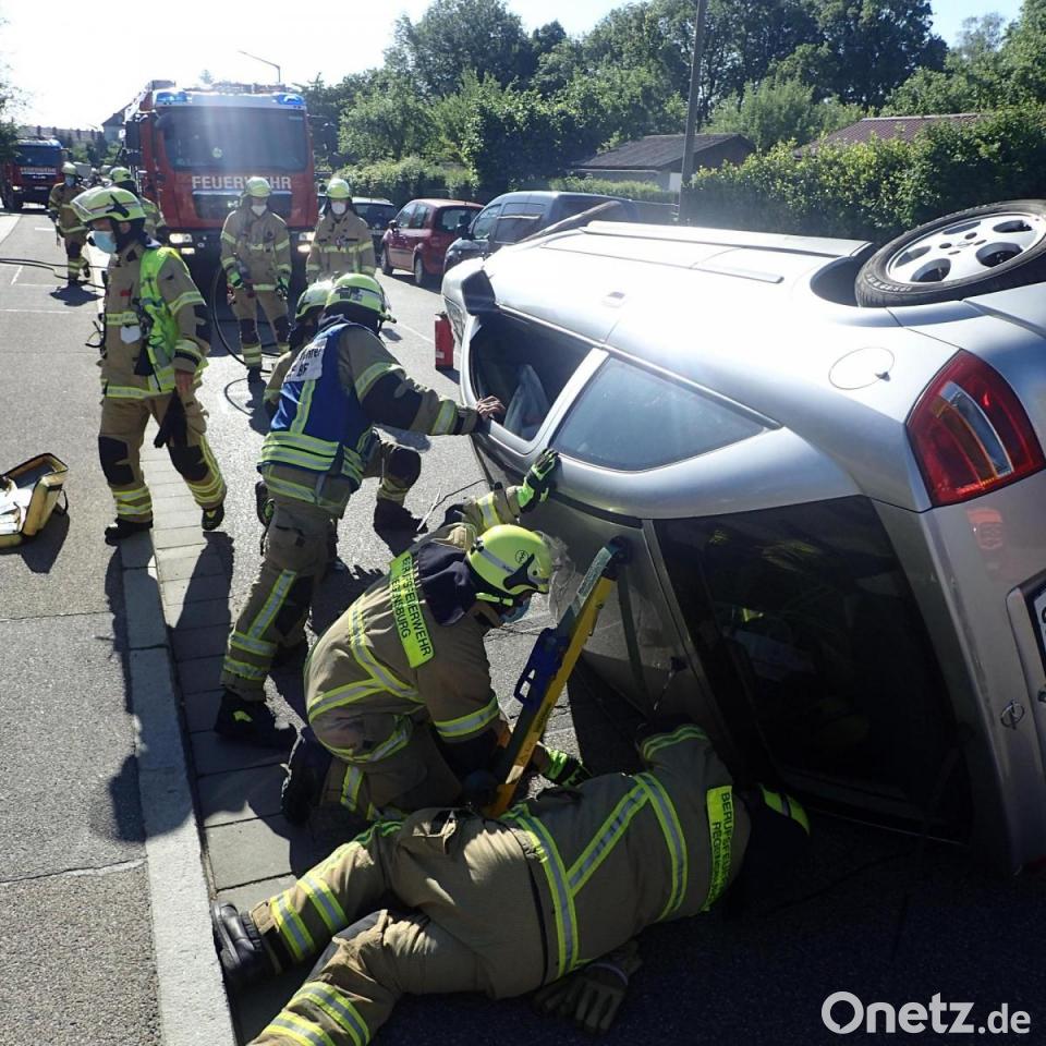 Am Sonntagmorgen wurde eine Person bei einem Unfall in Regensburg-Kumpfmühl im Auto eingeklemmt. Ein Fahrer hatte mit seinem Auto zwei parkende Fahrzeuge auf der Erzbischof-Buchberger-Allee gestreift, danach blieb er mit seinem Auto seitlich auf der Straße liegen. Der Fahrer war verletzt, aber ansprechbar – nach Rücksprache mit einer Notärztin verließ er schließlich mit Hilfe der Feuerwehrleute das Auto. Der Rüstzug der Berufsfeuerwehr Regensburg stabilisierte das Auto und stellte es schließlich wieder auf alle vier Räder.