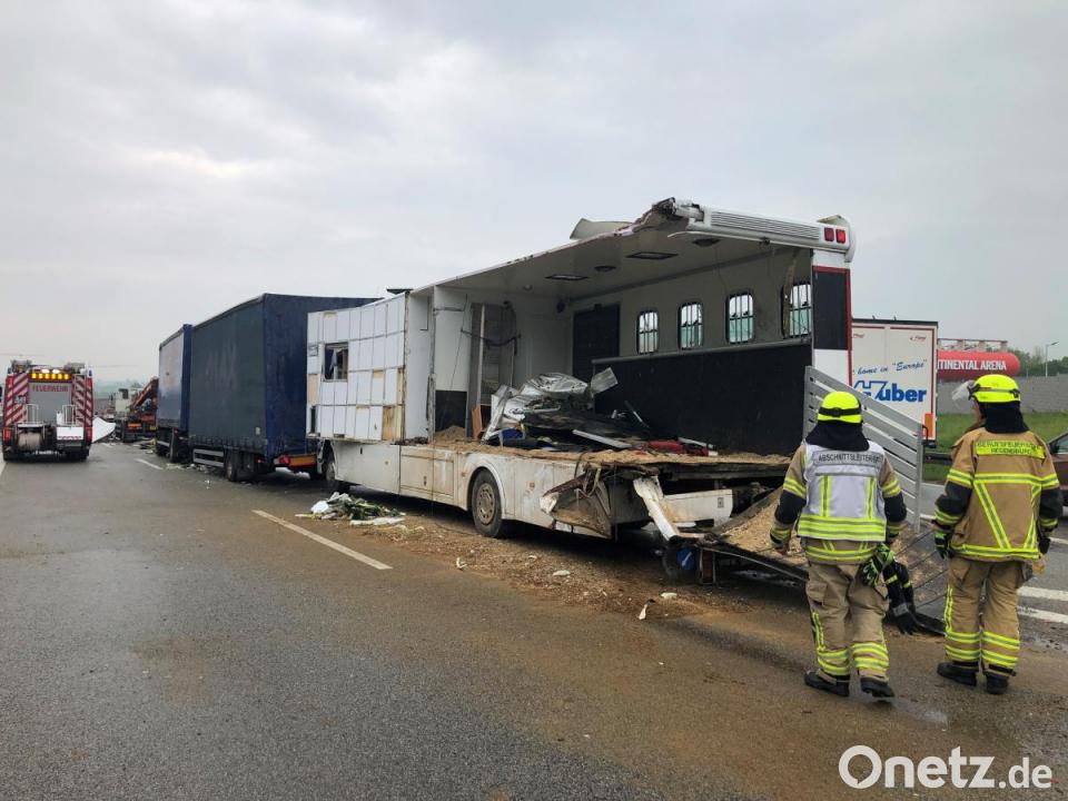 Auf der Autobahn A 3 bei Regensburg kam es am Freitagmorgen zu einem schweren Unfall, in den drei Lastkraftwagen, darunter ein Pferdetransporter, und zwei Autos verwickelt waren. Vier Pferde waren kurzzeitig entlaufen, konnten jedoch von den Besitzern bereits vor dem Eintreffen der Feuerwehr wieder eingefangen und beruhigt werden. Die Autobahn war bis in die Mittagsstunden in Fahrtrichtung Passau gesperrt und die Feuerwehr Pentling sowie die Berufsfeuerwehr waren am Einsatzort. Mehrere Handygaffer wurden von der Polizei vor Ort angehalten und darum gebeten die Aufnahmen zu löschen.