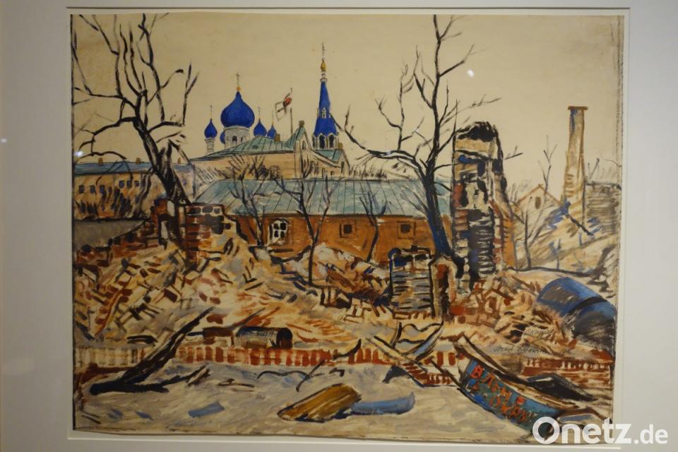 Geradezu pittoresk wirken die Ölskizzen Reinhold Koeppels. Der Kriegsmaler hat zerstörte russische Städte in irritierend ansprechender Weise dargestellt. Oftmals heben sich die leuchtend blauen Kuppeln der orthodoxen Kirchen vor einem klaren Winterhimmel ab. Alles in allem aber lassen die "Bilder aus dem Ersten Weltkrieg", die der Leere Beutel in so objektiver Weises aneinandergereiht hat, den Krieg als Irrsinn erscheinen. Und das nicht nur wegen der zerschossenen Städte und der erschossenen Soldaten.