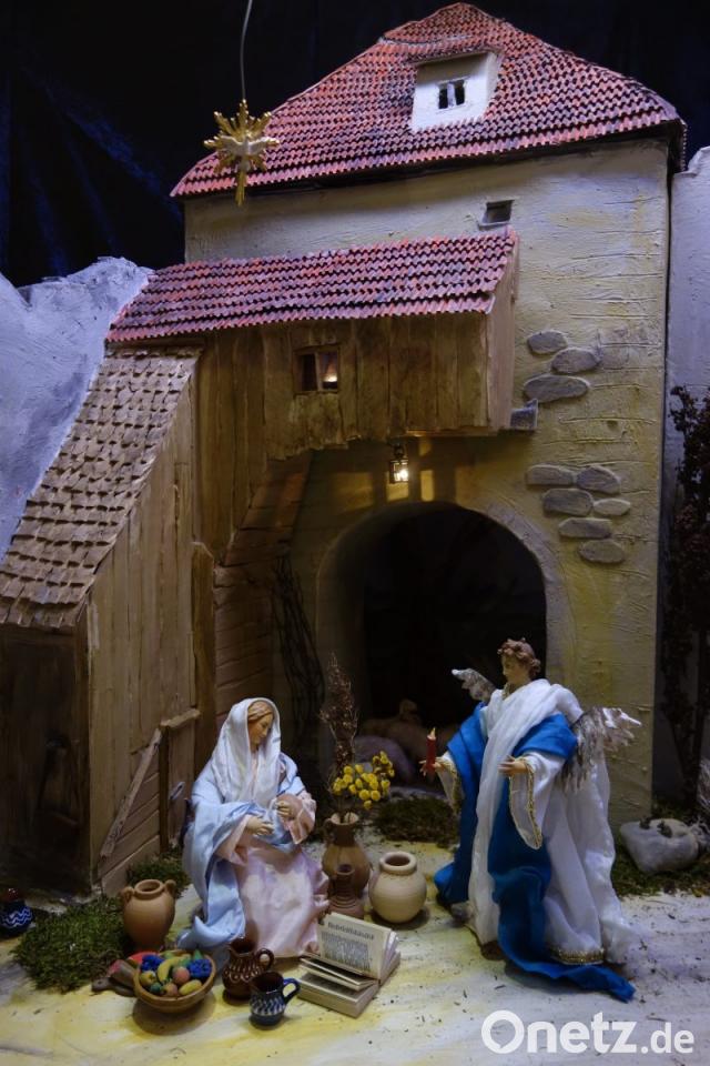 Die Krippendarstellungen beschränken sich nicht nur auf das direkte Geschehen rund um die Geburt Christi. Die "Hochzeit zu Kana" etwa, die das Ehepaar Pöllmann in prachtvoller Ausstattung geschaffen hat, macht den Sprung zum späteren Leben Jesu. Die Schöpfer der figurenreichen Szenerie greifen damit nicht nur thematisch eine italienische Krippentradition auf. Auch die detailreiche Ausstattung des theatralisch in Szene gesetzten Aufbaus erinnert an neapolitanische Krippen - dass Christine und Raimund Pöllmann in Schwandorf ein Marionettentheater betreiben, sei nur nebenbei bemerkt.