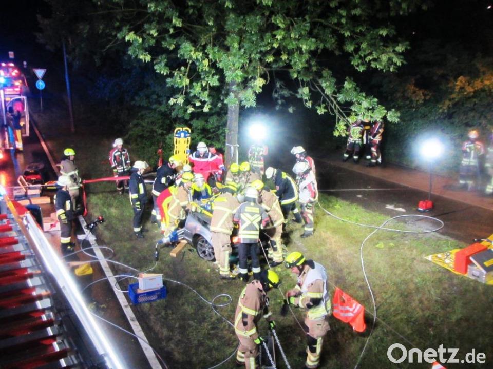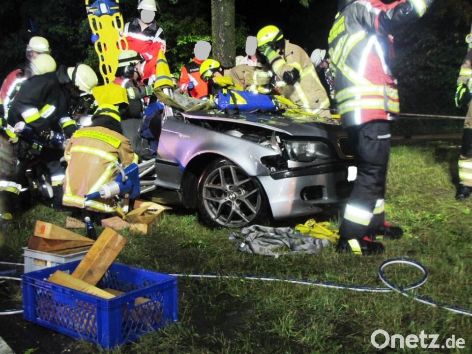 Gleich nachdem die Kräfte in der Brunnhuberstraße fertig waren, meldete die Integrierte Leitstelle einen schweren Verkehrsunfall auf dem Odessa-Ring. Umgehend fuhren die Kräfte hin. Weitere Fahrzeuge der Freiwilligen Feuerwehr Burgweinting und Sonderfahrzeuge der Berufsfeuerwehr waren ebenfalls beteiligt. Ein Auto ist aus noch ungeklärter Ursache von der Fahrbahn abgekommen und gegen eine Baum geprallt. Der Fahrer wurde dabei massiv im Bein und Beckenbereich eingeklemmt. In Absprache mit der Notärztin wurde der Patient versorgt und die technische Rettung eingeleitet. Wegen der starken Verformung musste das Dach entfernt und das Fahrzeug von drei Seiten mit Seilzügen, die an den Großfahrzeugen der Feuerwehr befestigt wurden, auseinander gezogen werden. Nach etwa 45 Minuten konnte der Mann aus dem Fahrzeug befreit und dem Rettungsdienst zur weiteren Versorgung übergeben werden, schreibt die Polizei. Die Osttangente in Fahrtrichtung Eisstadion war für rund eineinhalb Stunden komplett gesperrt, anschließend wurde der Verkehr an der Unfallstelle vorbeigeleitet. Der Autofahrer zog sich nach ersten Angaben schwere Verletzungen zu. An der Einsatzstelle waren neben der Polizei und dem Rettungsdienst etwa 40 Kräfte der Freiwilligen Feuerwehr Burgweinting und der Berufsfeuerwehr Regensburg.