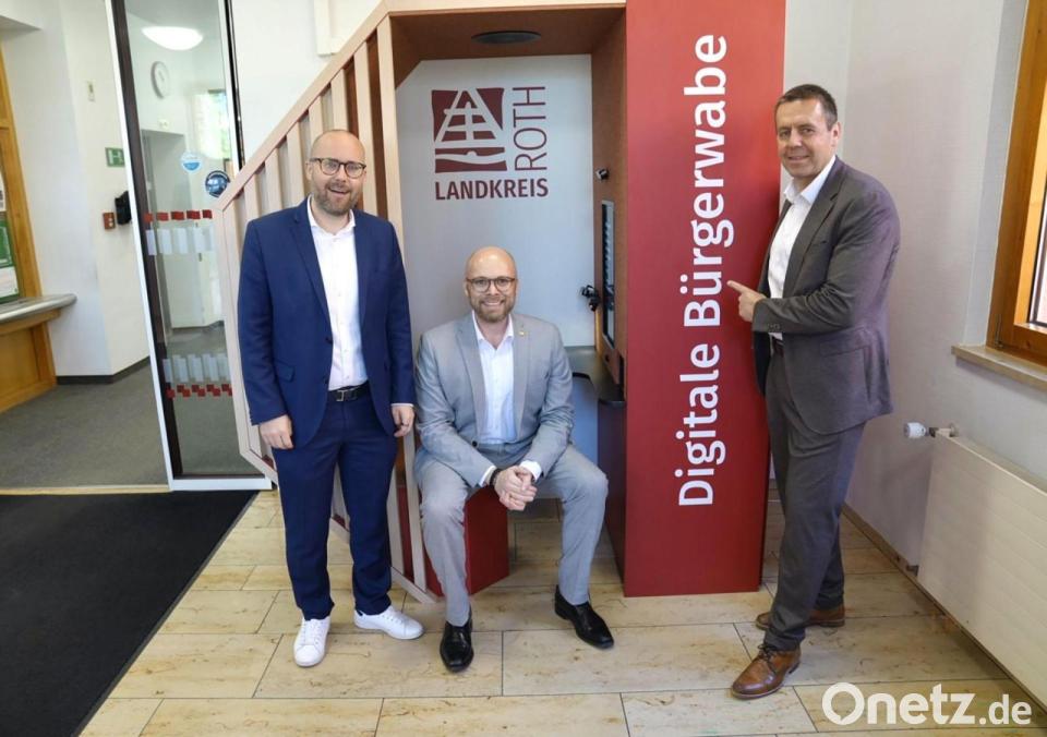 Das Landratsamt Roth hat eine digitale „Bürgerwabe“ vorgestellt, in der künftig Anträge etwa auf Wohngeld voll digital gestellt werden können. Es ist nach Angaben des Landratsamts die Erste ihrer Art in Deutschland. In der Wabe werde die Identität des Antragstellers per Kamera und Ausweis-Scan überprüft. Ein Programm führt die Kunden durch den digitalen Antrag und gibt - wenn nötig - Hilfestellung beim Ausfüllen, wie der Landkreis und das bayerische Digitalministerium gemeinsam mitteilten.