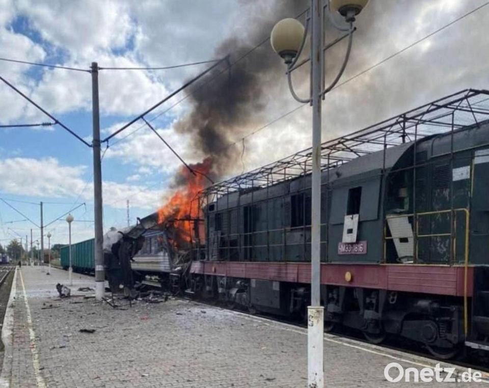 Nach Angaben der örtlichen Staatsanwaltschaft wurde in einem Wagon ein toter 71-Jähriger gefunden. Acht Menschen seien ins Krankenhaus gebracht worden, teilte der Gouverneur der Region, Oleh Hryhorow, bei Telegram mit. Unter den Verletzten seien auch drei Minderjährige im Alter von 8, 11 und 14 Jahren. Zuvor war von Dutzenden Verletzten die Rede gewesen. Schon am Mittag hatte Selenskyj den Angriff verurteilt.