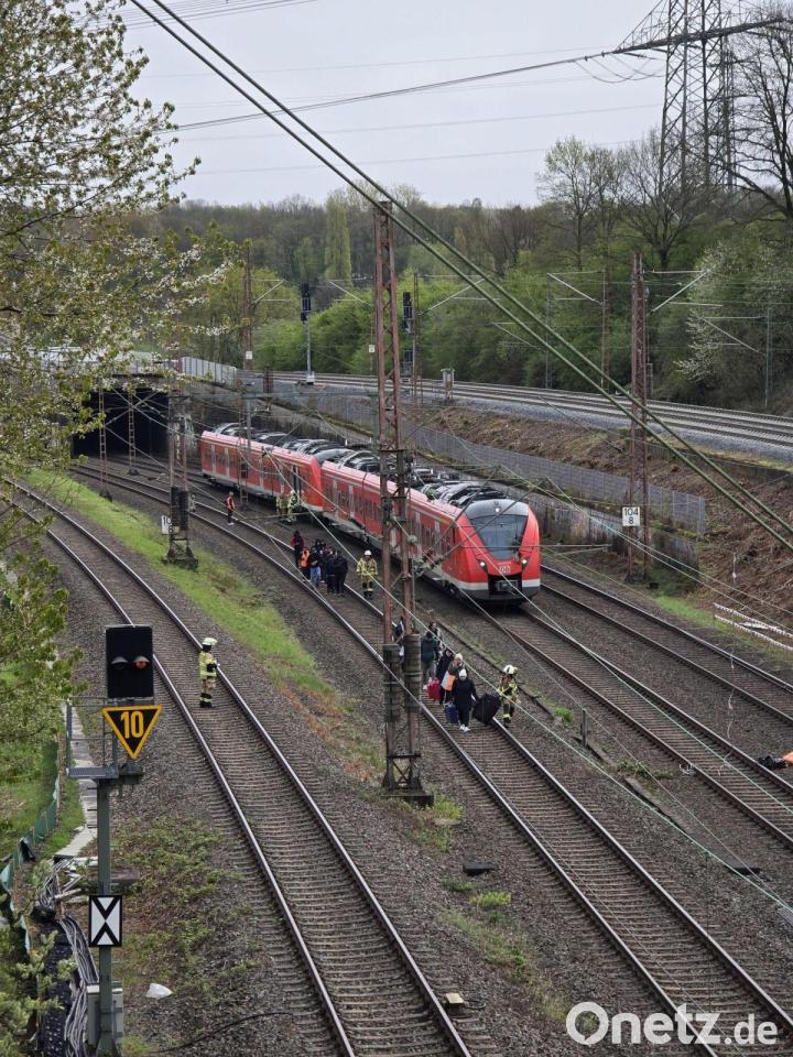 Die Deutsche Bahn schaltete die Oberleitung demnach zunächst stromlos, sodass die Insassen gut eine Stunde nach dem Vorfall am Sonntagmorgen ins Freie geführt werden konnten. Die Bahnstrecke blieb zunächst gesperrt.