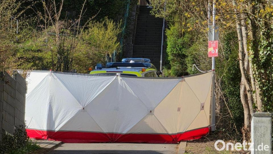 Am Ostersonntag waren zahlreiche Polizeikräfte in der engen Straße im Einsatz, in der das verfolgte Auto offensichtlich zum Stehen gekommen war. Kriminaltechnik und Spurensicherung seien vor Ort, hatte ein dpa-Fotograf berichtet. Der Bereich um die Sackgasse sei weiträumig abgesperrt und ein Sichtschutz aufgebaut worden. Am Ende der Sackgasse befindet sich demnach eine Treppe. In der Straße stand ein blaues Auto, davor und dahinter jeweils ein Polizeifahrzeug. In der Windschutzscheibe des blauen Autos war ein Loch zu erkennen. Das Fenster auf der Fahrerseite war kaputt.