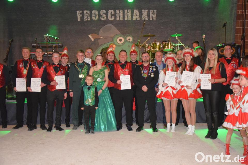 Mit dem Gardeleistungsabzeichen in Silber konnten heuer bereits Laura Brogl und Nina Stadlbauer geehrt werden. Das Gardeleistungsabzeichen Gold mit Stein und der Zahl 20 ist für Kerstin Schaller, die seit nunmehr 20 Jahren für die Gardeausbildung der Nachwuchsgarden gesamtverantwortlich zeichnet. Mit der Leistungsspange in Bronze wurden Thomas Diepold, Timo Respondek, Tobias Respondek, Johannes Rödl, Luis Weigert und Lukas Wittmann geehrt. Die Leistungsspange in Gold dürfen jetzt Komitee-Präsident Fabien Simon und Bernhard Rester am Faschingsrock tragen. Die Leistungsspange in Gold mit Stein wurde am Sebastian Pirzer verliehen. Dazu gratulierte der stellvertretende Jungend-Vorsitzende des Landesverbandes Ostbayern Martin Root, der eigens zur Verleihung aus Passau angereist war, sowie 2. Bürgermeister Mathias Huger.
