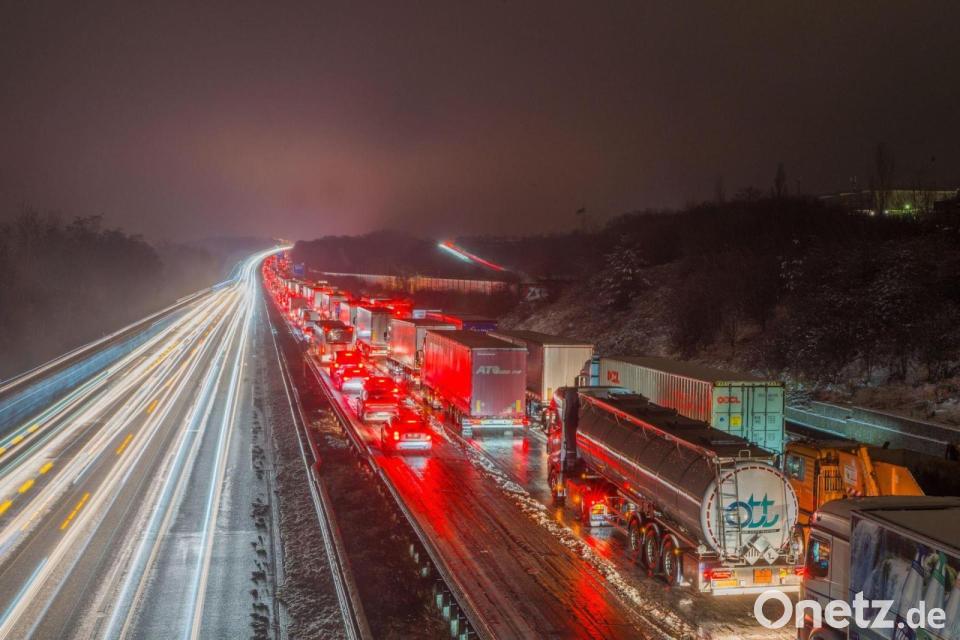 Mehrere Lastwagen standen dort quer auf der Fahrbahn. Unter den Wartenden war auch der Bürgermeister der Stadt Weilburg, Johannes Hanisch. Er sei auf dem Weg zu einem Termin gewesen und stehe seit nunmehr sieben Stunden, sagte er in einem Video auf Instagram. Und später postete er: „Nach zehn Stunden ist die Straße endlich wieder frei.“