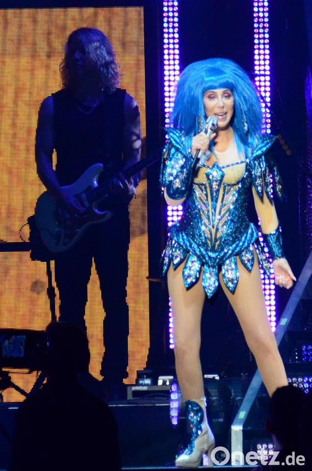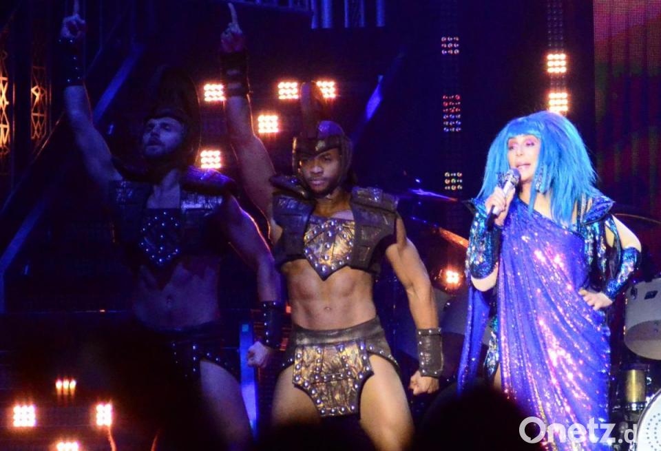Tja, das Thema Alter beschäftigt auch Cher. „Was macht Eure Oma heute Abend?“ Also bestimmt nicht dasselbe wie die Durchtrainierte, die figurbetont in kniehohen Lederstiefeln, Strapsen und Tanga als heißer Vamp lasziv über die Riesenbühne in der ausverkauften Münchner Olympiahalle stolziert. Und die unter dem Jubel von 10500 Fans mit voller Stimme „If I could turn back Time“ singt. Eineinhalb Stunden lang liefert die 73-jährige US-Amerikanerin den Münchnern eine perfekt durchgestylte Show.