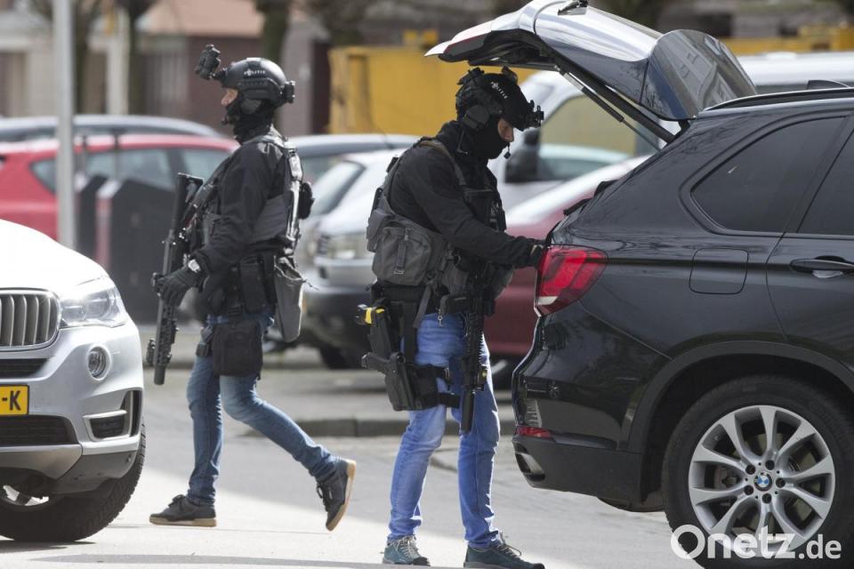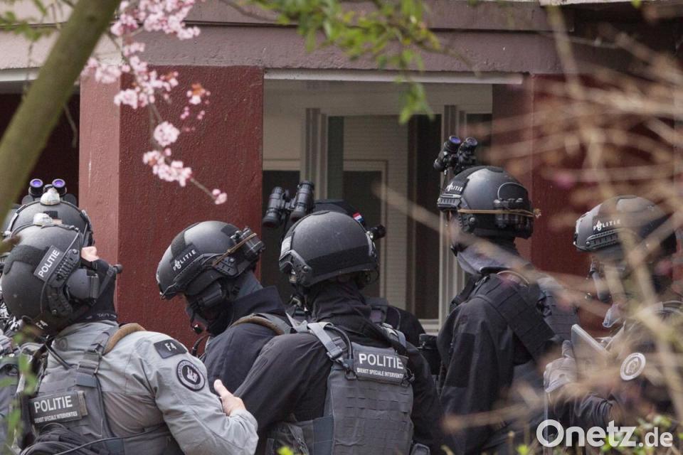 Eine Spezial-Einheit der niederländischen Polizei kurz vor einem Einsatz in einer Wohnung. Foto: Peter Dejong/AP