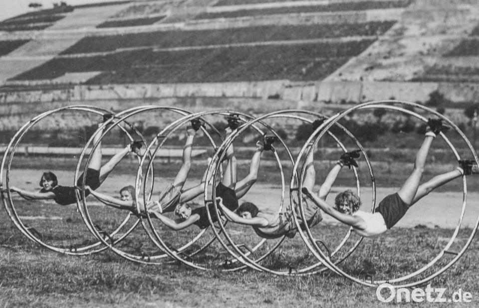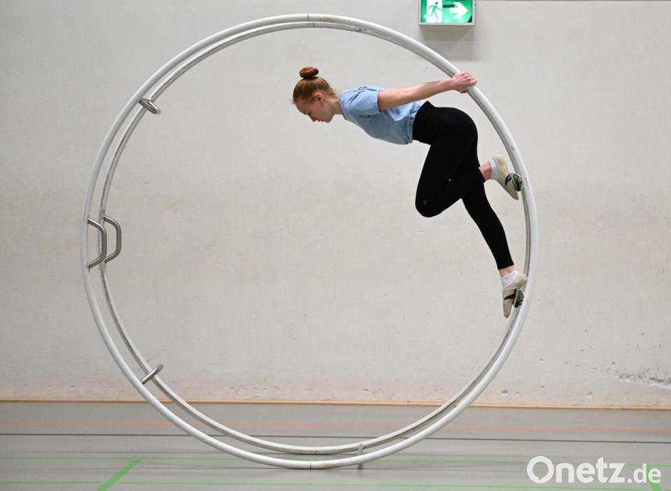 Und dieses Gewicht bekomme jeder, der diese Sportart ausübe, mindestens einmal schmerzlich zu spüren, schmunzelt Pleß. „Eine richtige Rhönradturnerin weiht sich ein, indem sie sich einmal den Kopf anhaut und einmal über den Finger rollt.“