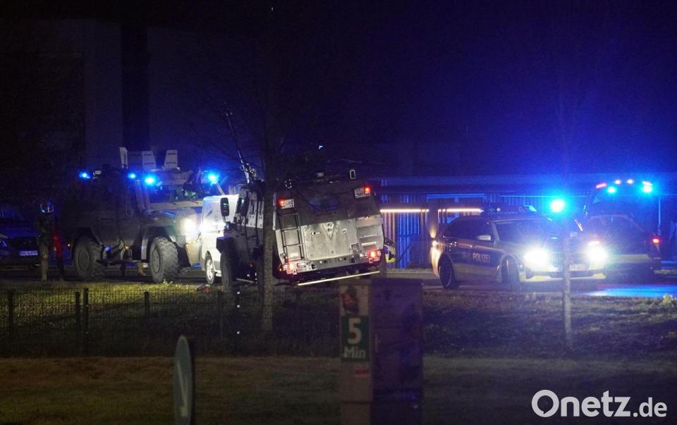 Nach der Festnahme des Mannes habe man sein Fahrzeug zunächst nicht öffnen können. „Es wurde technisch geöffnet“, sagte der Polizeisprecher. Dabei sei ein Panzerfahrzeug eingesetzt und der Kastenwagen beschädigt worden.