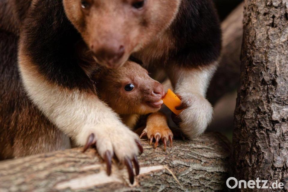 Baumkängurus sind auf Papua-Neuguinea heimisch. Die Beuteltierart gilt als vom Aussterben bedroht. Das Baby von Mama Kitawa und Papa Kayjo kam den Angaben nach im Rahmen eines internationalen Zuchtprogramms zur Erhaltung der Art auf die Welt.