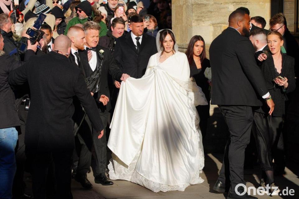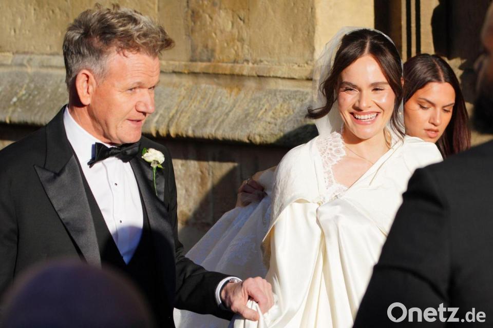 Starkoch Gordon Ramsay hat sich am Hochzeitstag seiner Tochter als stolzer Papa präsentiert. Auf Bildern der Hochzeit ist der 59-Jährige zu sehen, wie er seine Tochter zur Kirche führt. Die beiden sind umringt von Pressevertretern, Zuschauern und Sicherheitspersonal.