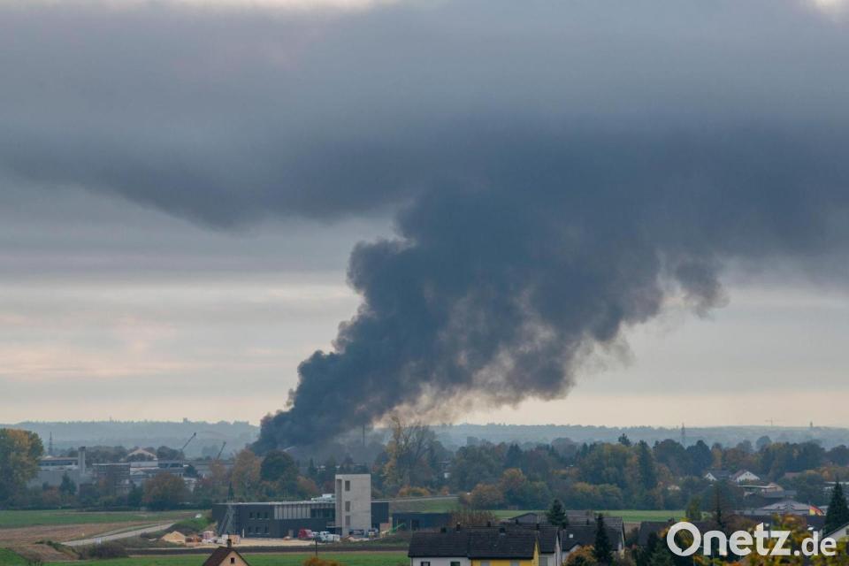Eine Rauchwolke war weithin zu sehen. Anwohner sollen laut Polizei Fenster und Türen geschlossen halten. Den Angaben zufolge waren Menschen zum Zeitpunkt des Brandausbruchs nicht im Gebäude. Schadenshöhe und Brandursache waren zunächst unklar.