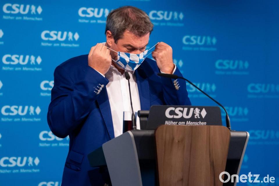 In München und anderen Corona-Hotspots in Bayern soll es eine Maskenpflicht auf öffentlichen Plätzen geben, wo Abstandsregeln nicht eingehalten werden. Bayerns Ministerpräsident Markus Söder (CSU) stellte dies angesichts hoher Neuinfektionszahlen am Montag für die Landeshauptstadt bereits konkret in Aussicht. Und an diesem Dienstag will das Kabinett eine entsprechende Soll-Regel für sämtliche bayerischen Kommunen beschließen, in denen die Neuinfektionszahl bei mehr als 50 Fällen pro 100 000 Einwohner binnen sieben Tagen liegt. Das kündigte Söder am Montag in München an.