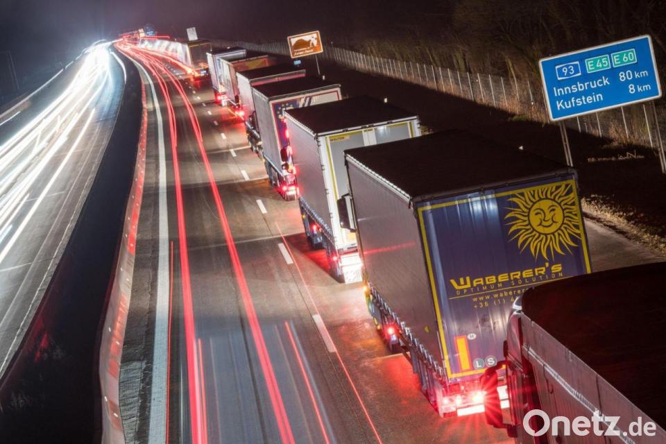 Wegen eines langen Lastwagenstaus an der Grenze zu Österreich hat die Polizei im Süden Bayerns Sattelzüge zurück auf die Autobahn schicken müssen. Weil auf der Inntalautobahn nach einem Lkw-Fahrverbot am Dreikönigstag nur bis zu 300 Lastwagen pro Stunde unterwegs sein durften, sei der Stau am Mittwochmorgen auf bayerischer Seite bis zu 33 Kilometer lang gewesen, teilte die Polizei mit. Viele Fahrer versuchten deshalb, den Stau über Gemeinden an A8 und A93 zu umfahren - trotz entsprechender Verbote.