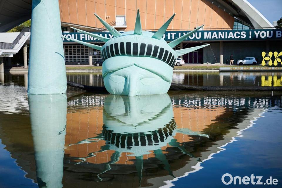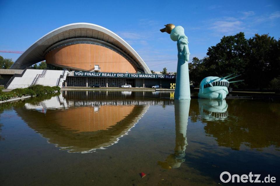 Von der Freiheitsstatue ragen nur noch Kopf und Arm aus einem Wasserbecken. Darüber prangen außen am Berliner Haus der Kulturen der Welt auf Englisch die Sätze: „Ihr habt es endlich geschafft! Ihr Verrückten! Ihr habt es vermasselt!“ Die Anspielung auf die Schlussszene des Filmklassikers „Planet der Affen“ (1968) nach dem Untergang der Menschheit empfängt die Besucher der dreiwöchigen Ausstellung des bekannten TV-Moderators und Satirikers Jan Böhmermann (44). Der Titel: „Die Möglichkeit der Unvernunft“ (27.9. bis 19.10.).