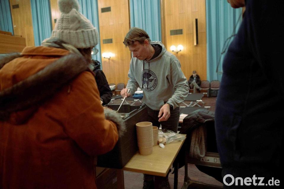 Die Wohnung seines Vaters etwa sei bereits so kalt, dass sich Feuchtigkeit bilde, sagt Frank Adameit. Deshalb habe er den über 90-Jährigen erst einmal hierhin gebracht. Der pflegebedürftige Mann sitzt neben seinem Sohn im Rollstuhl. Seit der Mittagszeit harren sie hier aus. Wie es in den nächsten Tagen weitergehen wird, wissen sie nicht. Er hoffe darauf, dass der Strom früher wieder fließt als Donnerstag, sagt Adameit.