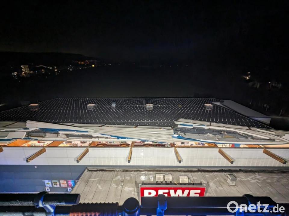 Sturm "Zoltan" hat in der Nacht auf Samstag das Dach eines Supermarkts in Bad Abbach zerstört.