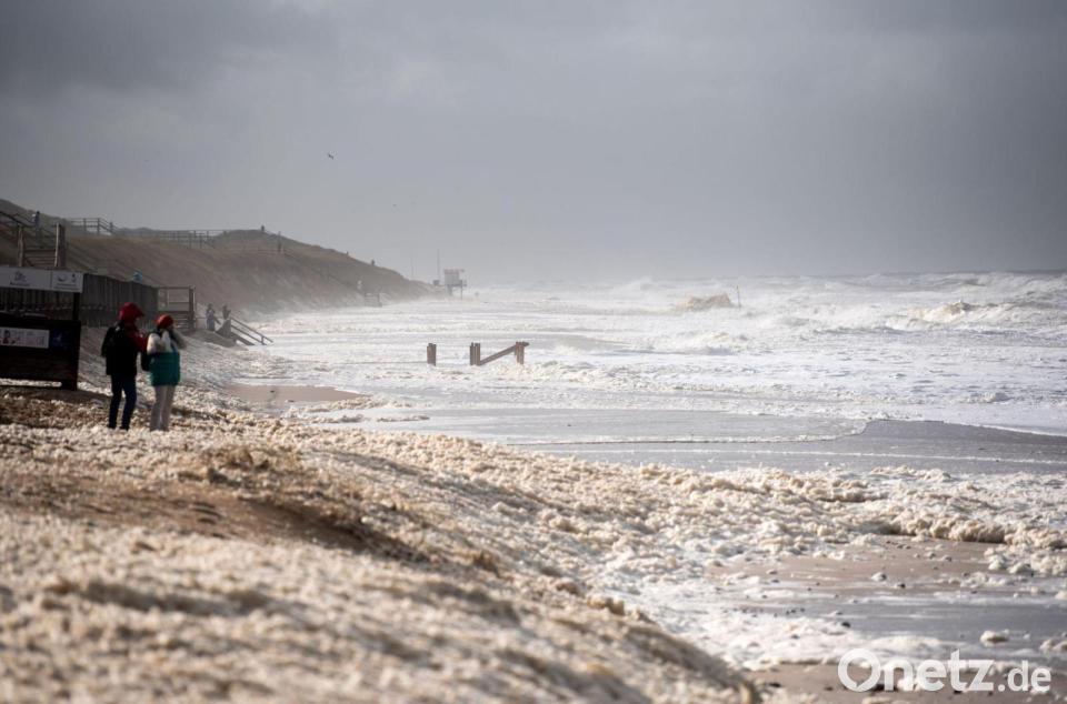 Für Windsurfer bietet das Wetter offenbar gute Bedingungen. Bilder zeigen, wie sich einige Sportler auf der Nordseeinsel Sylt trotz des Unwetters ins Meer wagen. Auf Norderney setzte der Sturm einen Campingplatz unter Wasser. Strandkörbe kippten um, die Wellen reichten teilweise bis an die Dünen heran.