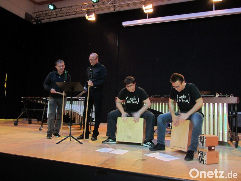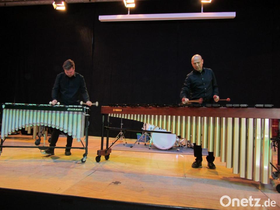 Wahrlich variantenreich und vom Publikum stürmisch gefeiert präsentierten sich Kopetzki-Kostproben wie der flotte "Turpin Rag", der - nomen est omen - "Double Groove", das faszinierend exakte "Drum along" oder der "African Wind" in der deutsch-österreichischen Tutti-Version. Rhythmische Ausflüge Richtung Spanien, Karibik oder Orient zählen zur gerne gehörten Kernkompetenz. Dagegen überraschte und begeisterte der jazzig-fluffige Wien-Abstecher mit klassischen Mozart-, Rossini- und Radetzky-Marsch-Zitaten sowie der ungewöhnlichen, aber sehr einträchtigen Dreierbesetzung an der Marimba.